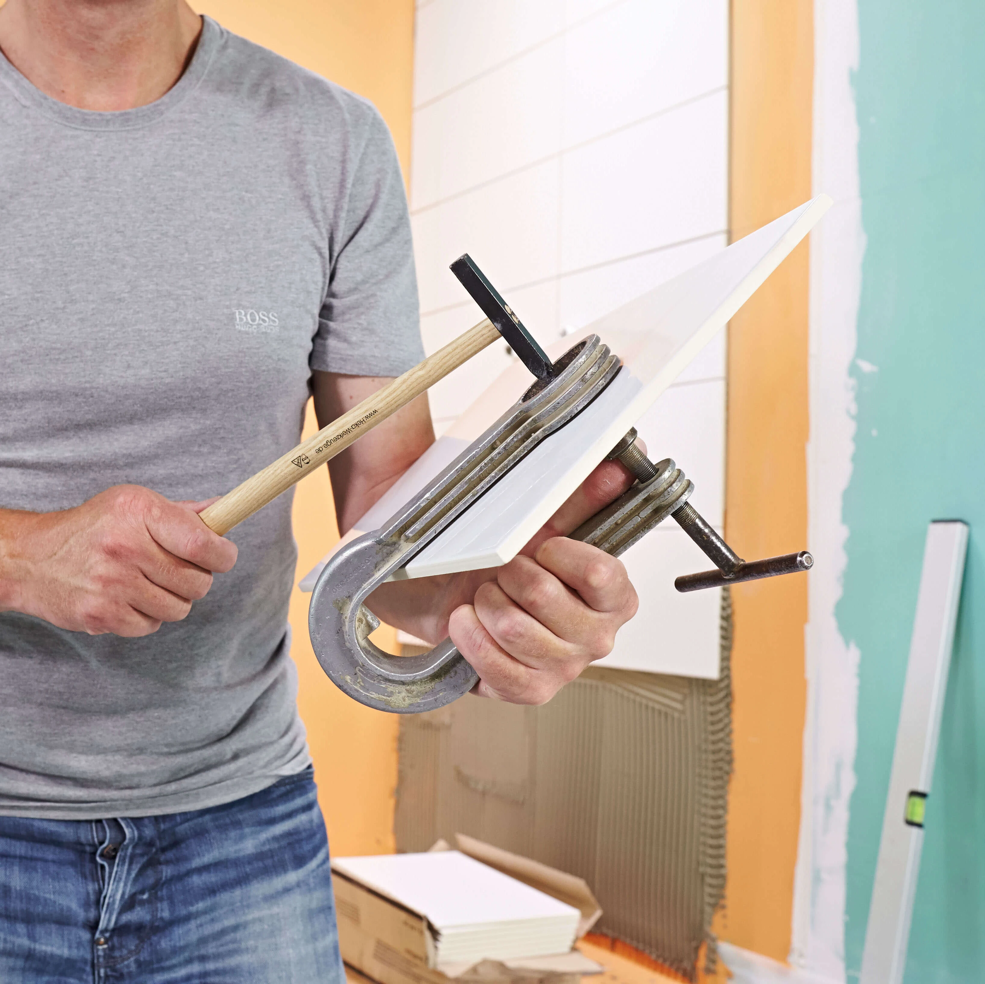 Und so geht’s: Wenn ihr in einem Raum die Wände und den Boden fliest, beginnt ihr mit den Wänden. Tretet regelmäßig ein paar Schritte zurück, um die Wand als Ganzes betrachten zu können.