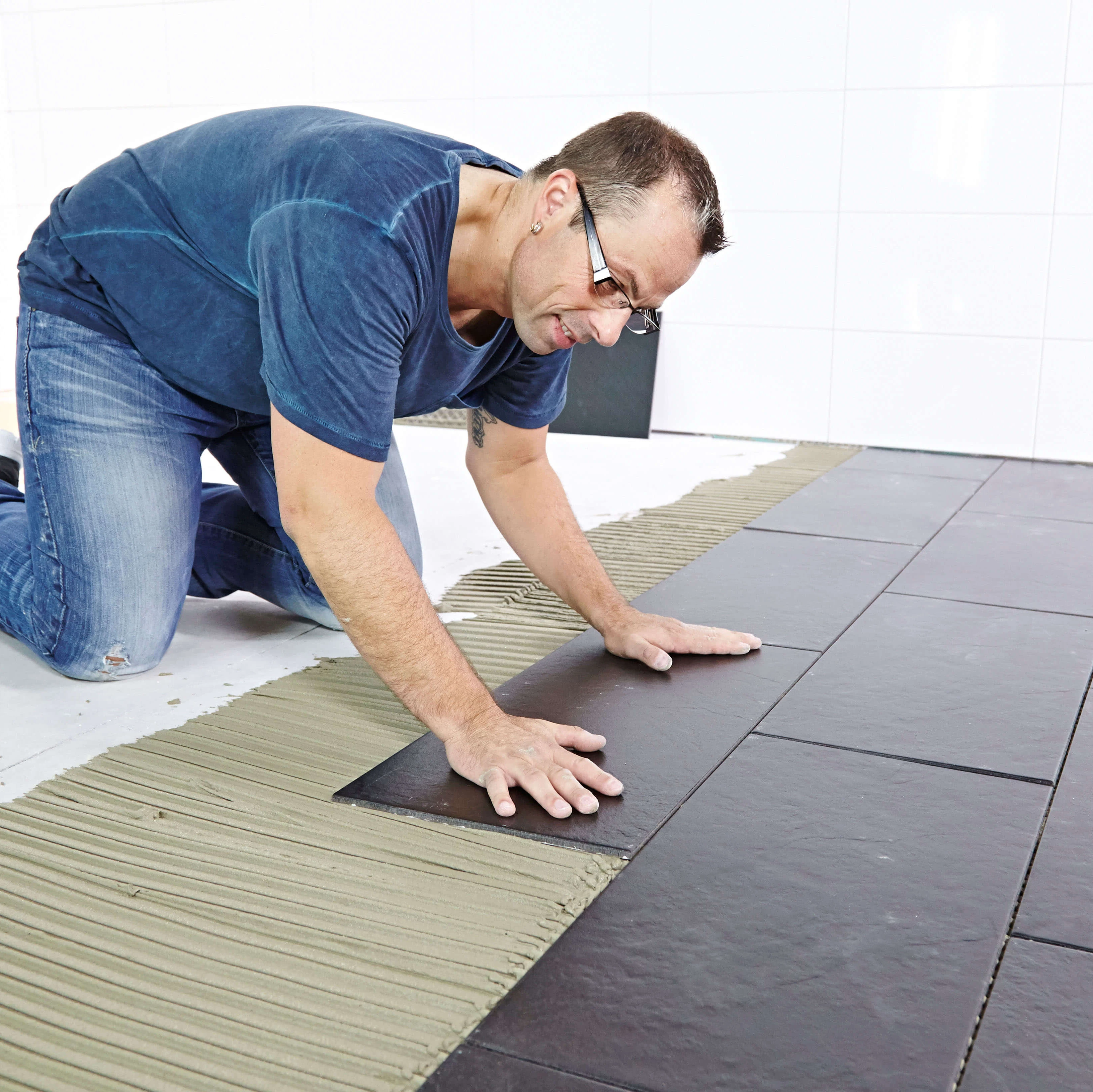 Nachdem ihr alles geplant und vorbereitet habt, könnt ihr mit der Verlegung beginnen. Achtung: Rührt den Kleber erst an, wenn alle anderen Arbeiten abgeschlossen sind!