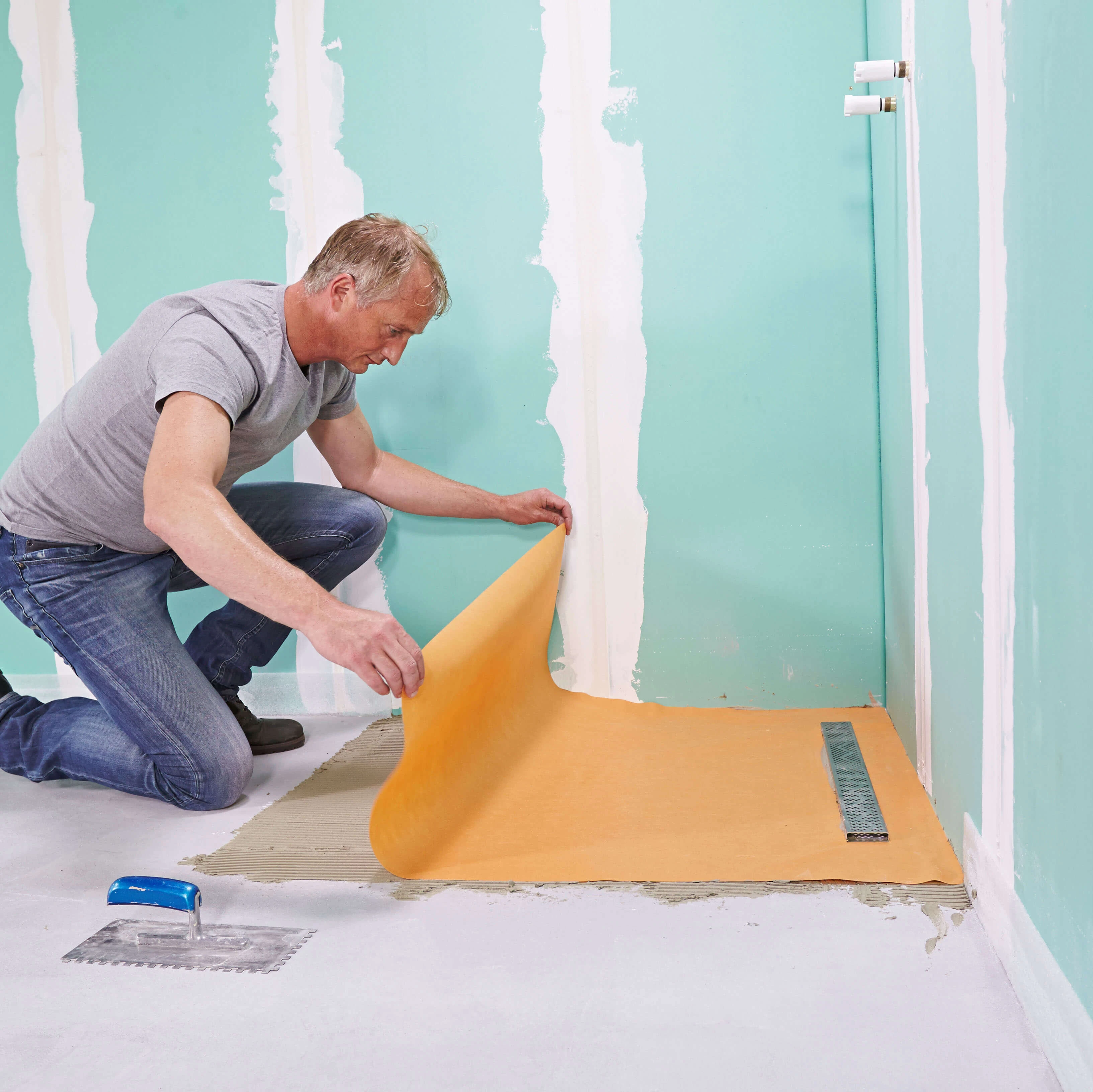 Wenn ihr einen sogenannten „Dauernassbereich“ wie eine Dusche plant, solltet ihr erst noch den Boden gründlich abdichten. Hier entlang für die Anleitung.