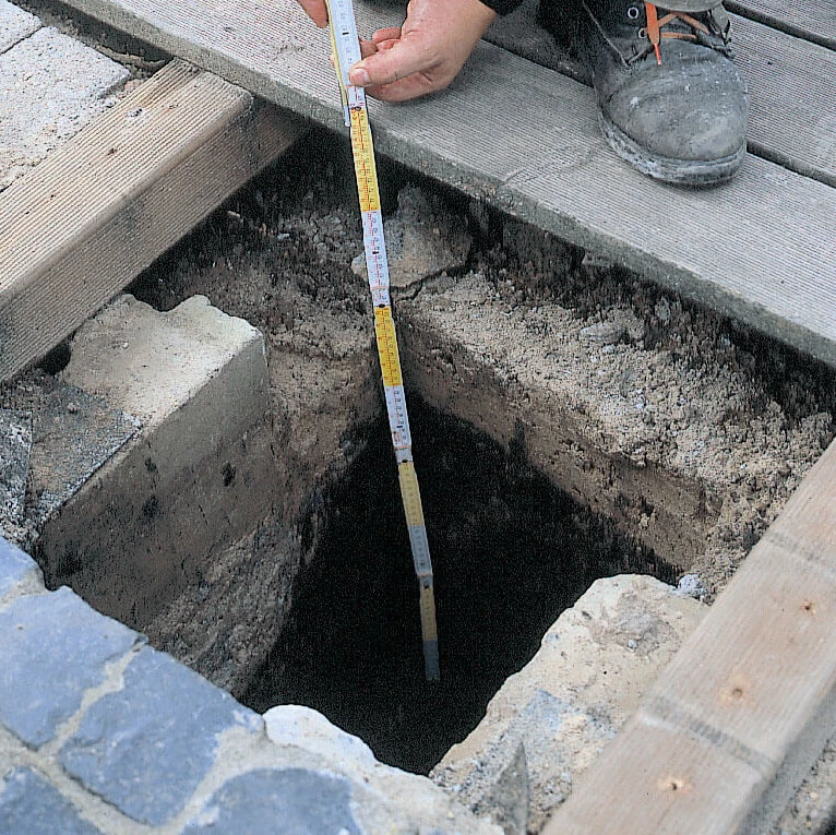 Um ein dauerhaftes und frostsicheres Fundament zu erstellen, müsst ihr dieses in einer Tiefe von mindestens 80 cm in das Erdreich einbinden.
